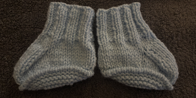 Handknitted blue mitts and Boottees