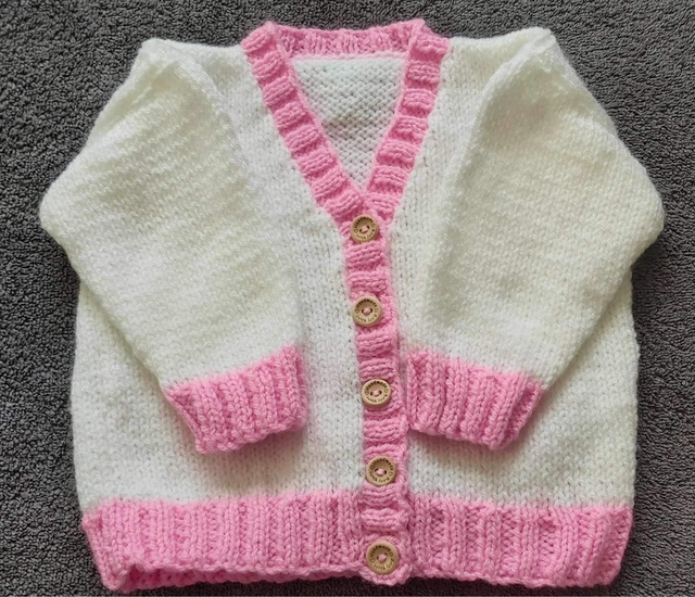 Hand knitted cardigan available in a variety of colours.