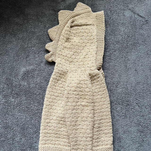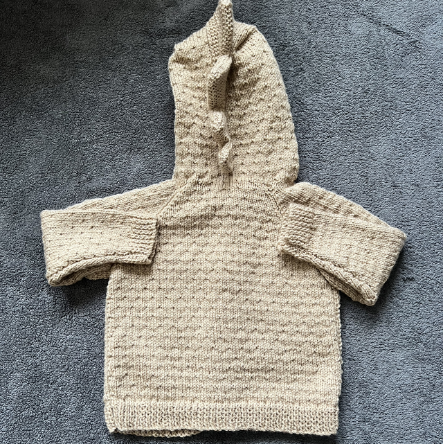 Hand knitted hooded cardigan with dinosaur spikes on the hood, available in a variety of colours.