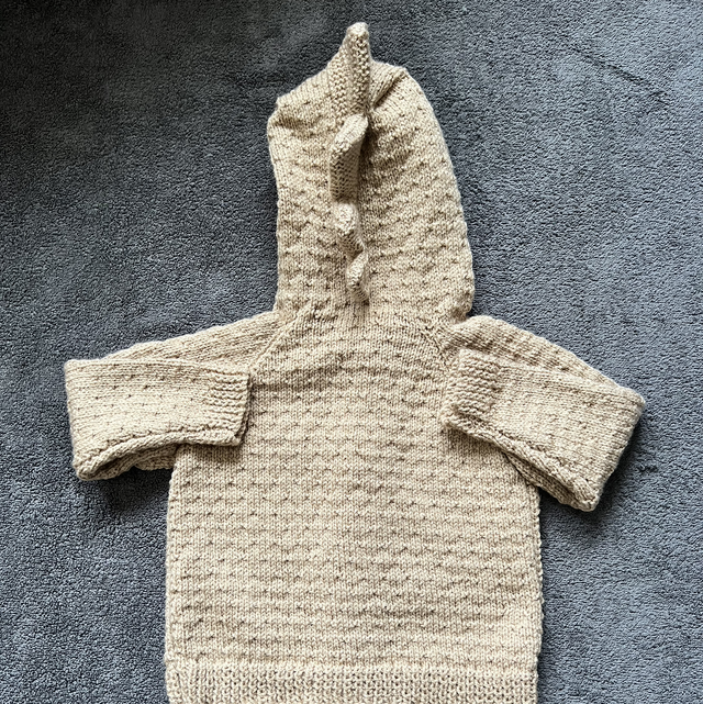 Hand knitted hooded cardigan with dinosaur spikes on the hood, available in a variety of colours.